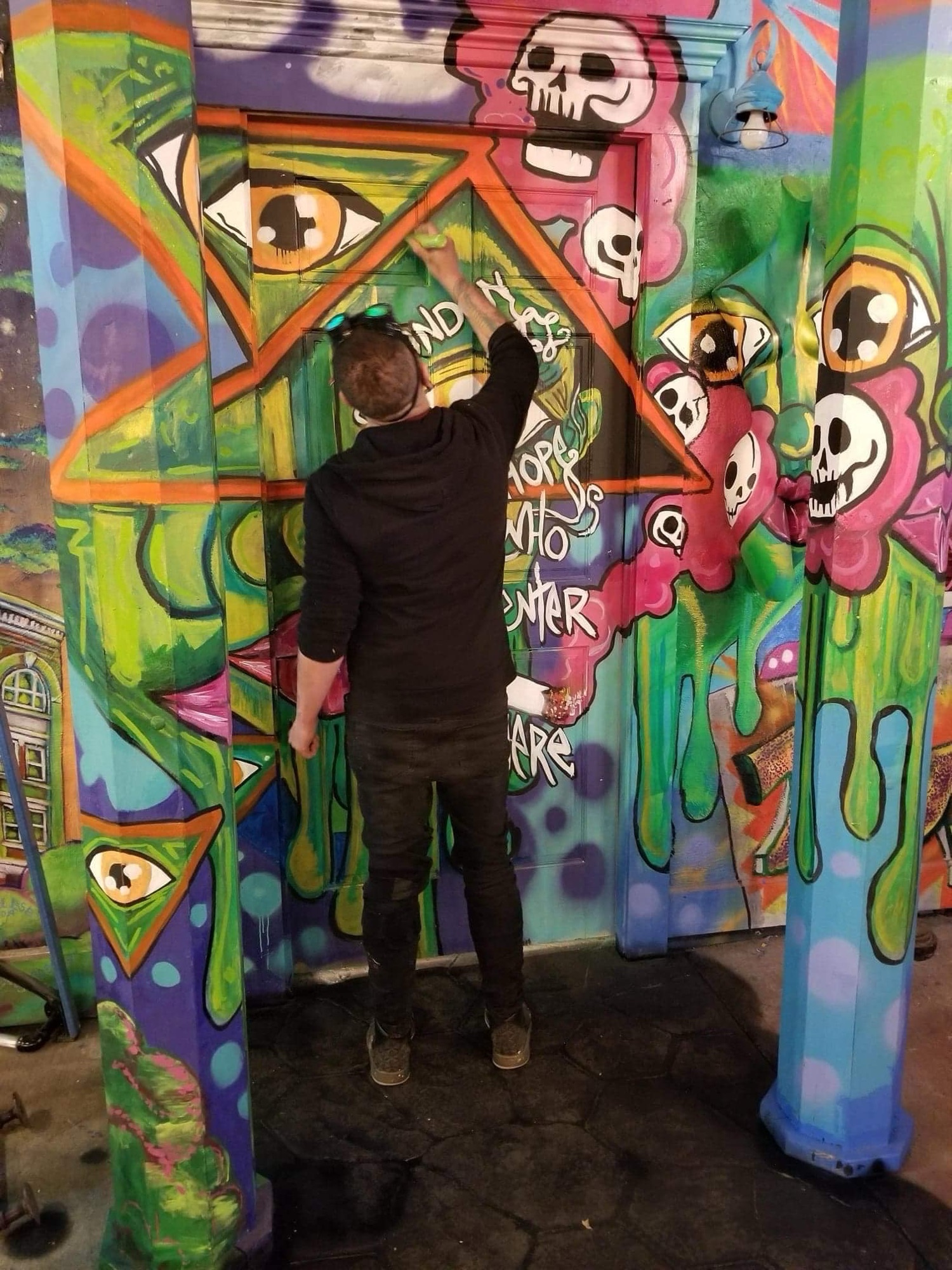“Sicken at 624 had a complete renovation,” Lopez shares. “A team of 16 to 20 artists transformed the space, each with their own section. I was lucky to work on multiple areas, which led to even more opportunities. By the end, my work became the connective tissue of the building.”