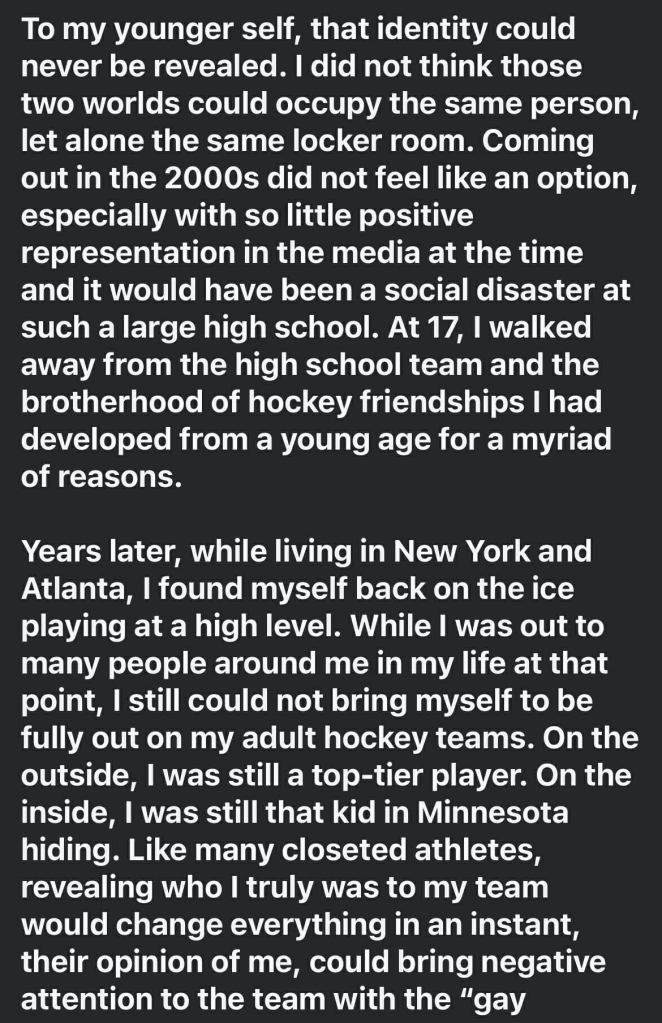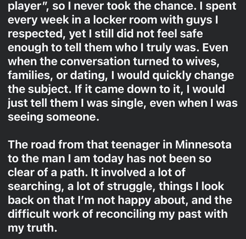 Since the show premiered, several athletes have come out publicly. Some have shared that the show’s honest emotions helped them face their own fears about fitting in within traditionally masculine sports, like Minnesota hockey player Jesse Kortuem, who cited the show in a recent Facebook post for helping him find the courage to do so.