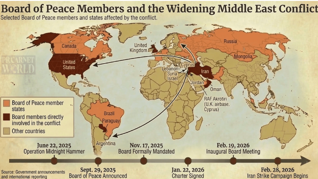 Against this backdrop, the Board of Peace is taking shape at an unusual moment, even as the region it hopes to stabilize slides deeper into war.