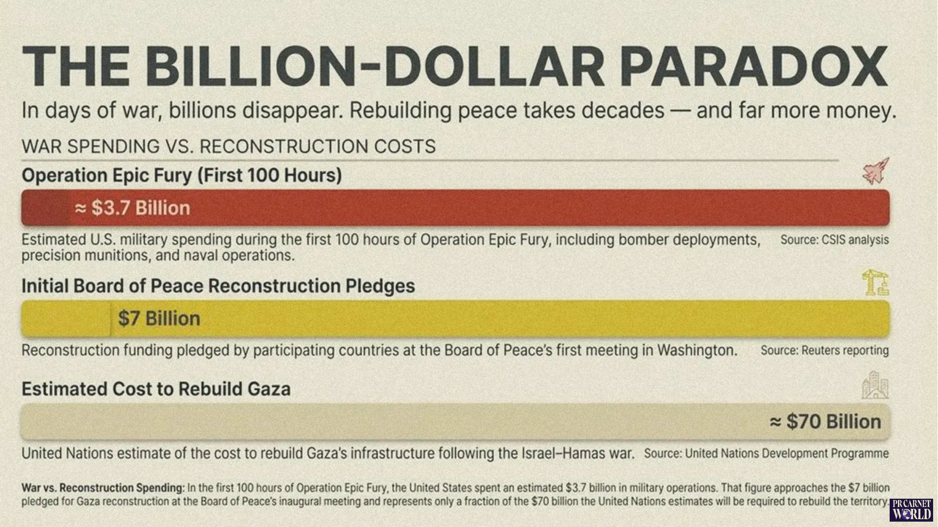 Adding to the complexity, the contrast between reconstruction funding and the cost of war is striking.
